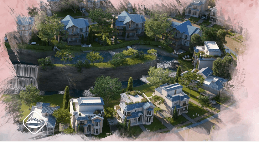 كما أنه يمتد على قطعة أرض بمساحة ضخمة، شكلت غالبيتها مقومات طبيعية ساحرة تتنوع بين المساحات الخضراء والمعالم المائية المختلفة من حيث الأنواع والتصميمات وذلك ما أضاف جاذبية خاصة للمشهد العام، بينما تشغل الوحدات السكنية الجزء الأقل من المساحة ولكنها تشهد تنوع هائل بين الشقق والفلل حتى يتم إرضاء جميع الرغبات المختلفة للعملاء، وتتمثل الجوانب الرئيسية للمشروع على النحو التالي: