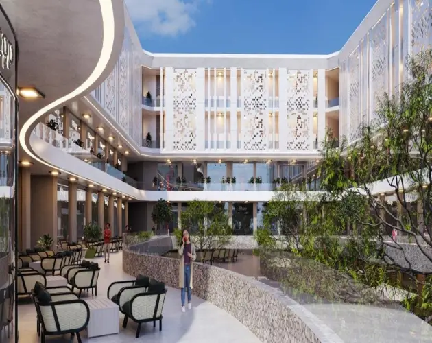 - تمّ تخصيص منطقة لاند سكيب ضخمة وأماكن للجلوس، للاستمتاع بالمنظر الخارجي للمول، إلى جانب منطقة بلازا كبيرة